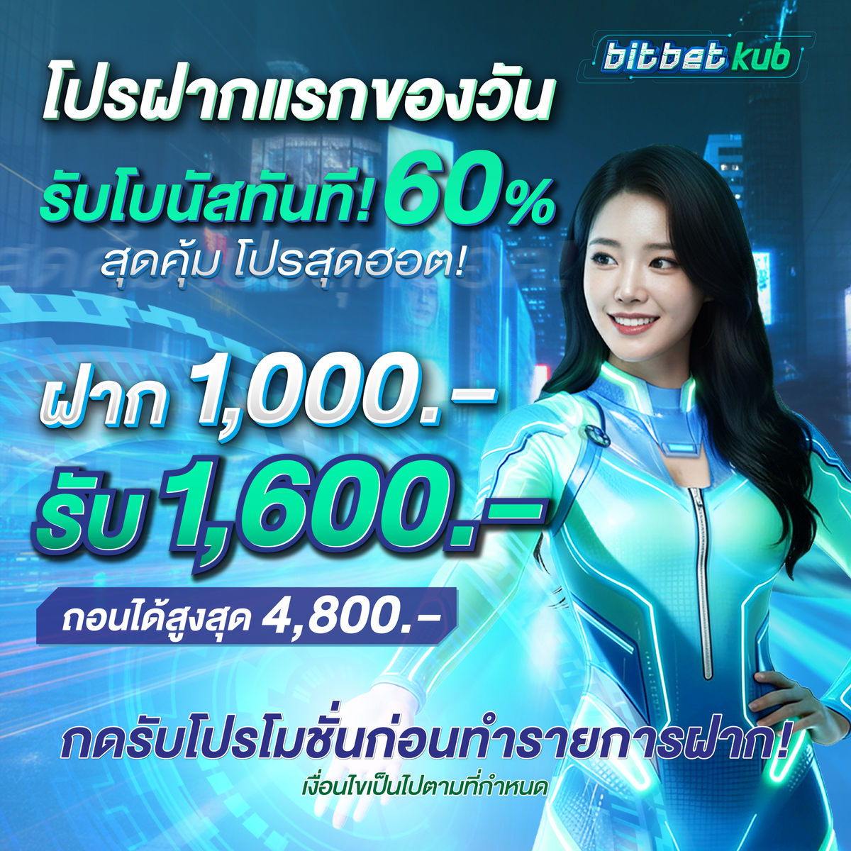 ฝากครั้งแรกรับเพิ่มทันที 60%