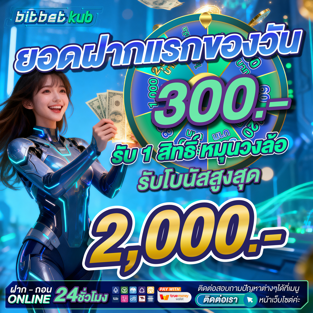 💗 ยอดฝากแรกของวัน 300 บาท รับ 1 สิทธิ์ หมุนกงล้อ ลุ้นโบนัสสูงสุด 2000 บาท