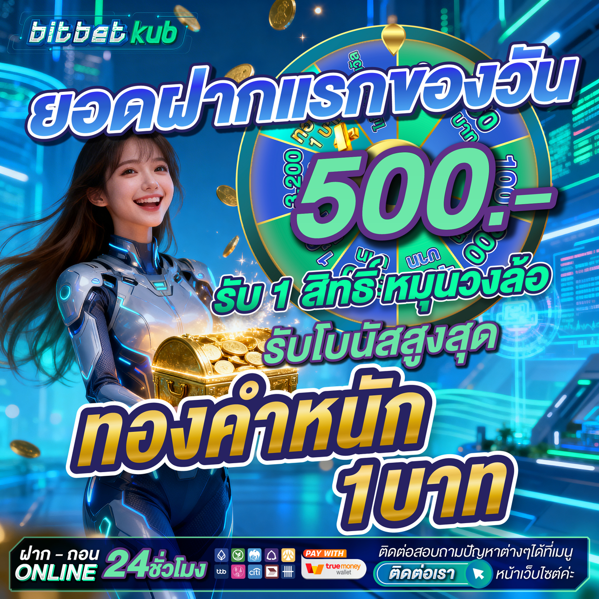 💗 ยอดฝากแรกของวัน 500 บาท รับ 1 สิทธิ์ หมุนกงล้อ ลุ้นโบนัสสูงสุด ทองคำหนัก 1 บาท
