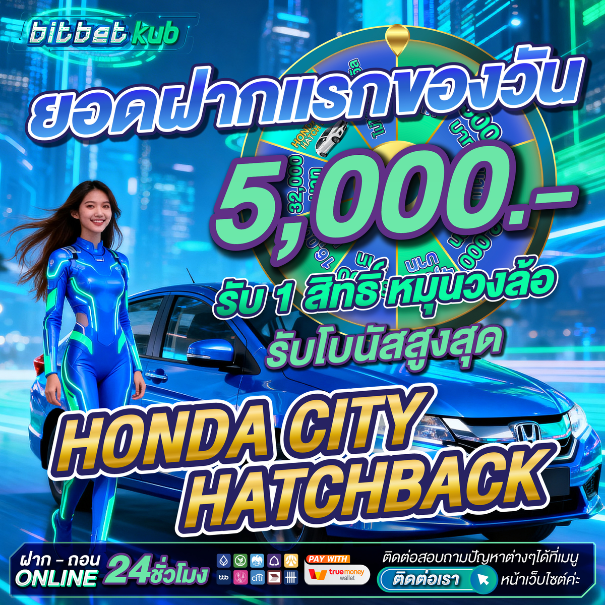 💗 ยอดฝากแรกของวัน 5000 บาท รับ 1 สิทธิ์ หมุนกงล้อ ลุ้นโบนัสสูงสุด รถยนต์ Honda City 1 คัน
