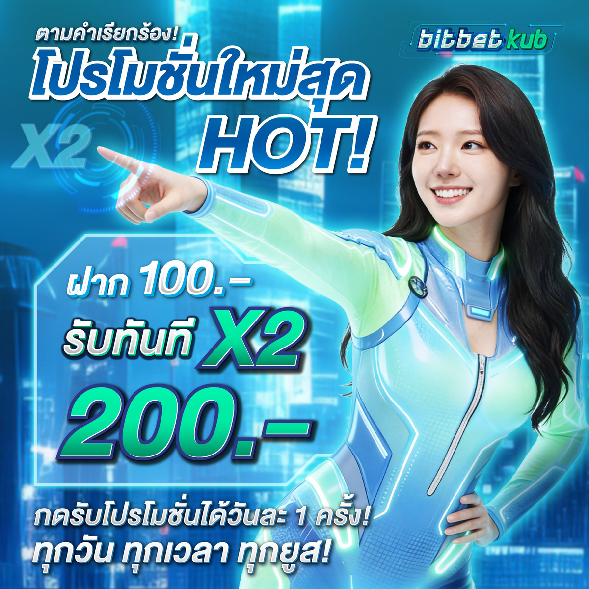 ฝากยอด 100 บาทเท่านั้น รับโบนัส 100 บาท รวมเป็น 200 บาท👈